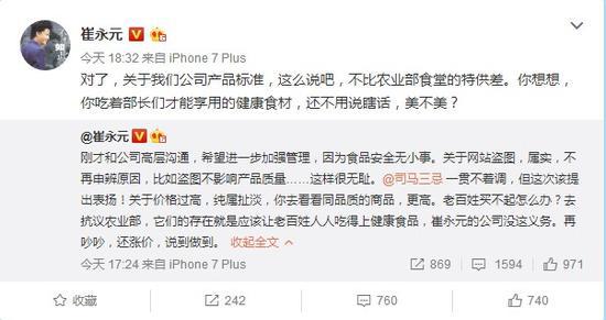 原標題:崔永元回應名下電商出售食品價格高:再吵吵還漲價