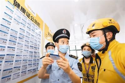 圖為6月20日,安徽省淮北市市場(chǎng)監(jiān)督管理部門(mén)工作人員在外賣(mài)企業(yè)騎手管理站點(diǎn),對(duì)送餐員身份、健康狀況等基本信息核驗(yàn)、登記、更新及建檔工作落實(shí)情況進(jìn)行檢查。