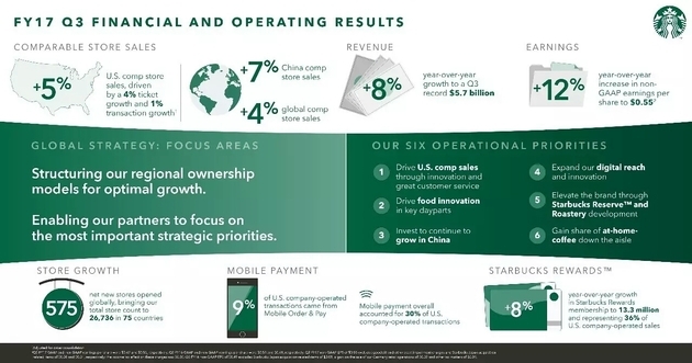 美國時間7月27日,星巴克發布了公司的第三財季財報。報告顯示,公司營收增至57億美元,創下了公司歷史上的紀錄。