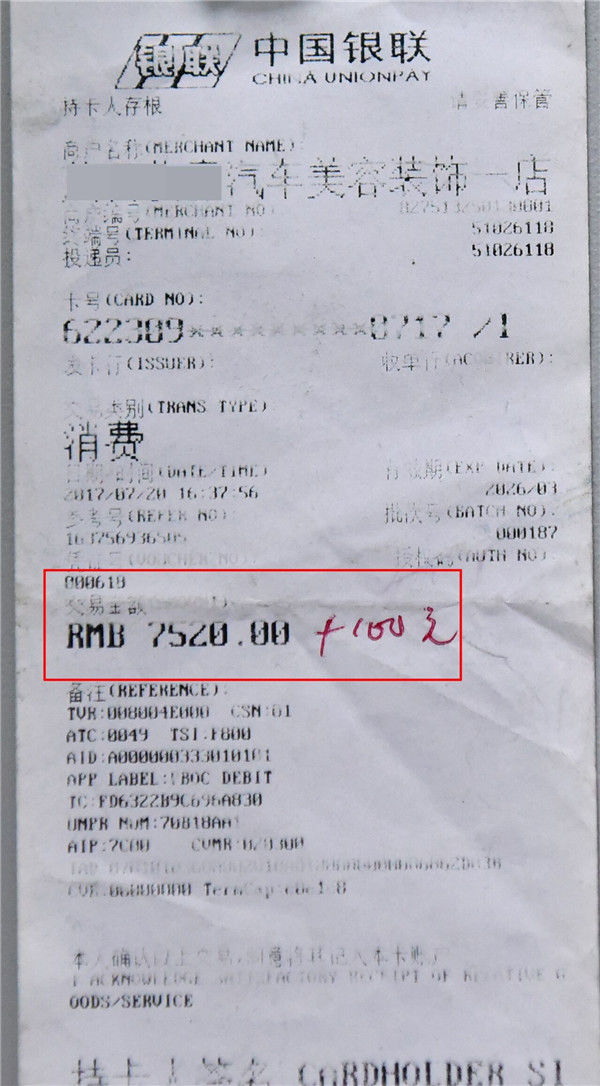 “他們很急的樣子,根本沒給我思考的機會。”21日下午5點過,李樂拿著藥品送黃婆婆回到住所。在小區門口,他拿出POS機給老人刷卡,“2萬元由愛眼工程資助,盒子要收回,再退60元,減去已付的100元定金,他最后讓我刷了7520元。”