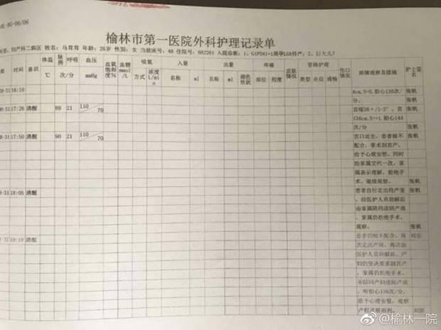 9月3日,微博認證為“榆林市第一醫(yī)院官方微博”針對8.31產婦跳樓事件有關情況第一次發(fā)表聲明稱,產婦馬某于8月30日15時34分,“停經41+1周要求住院待產”入院。院方曾表示,檢查后醫(yī)護人員就向產婦、家屬說明情況,并建議剖宮產,然而家屬堅持順產。對此說法,家屬并不認可,雙方各執(zhí)一詞。