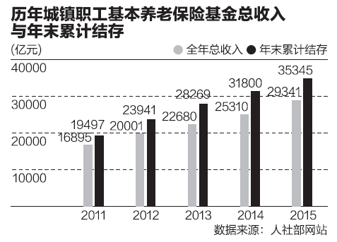 需要引起注意的一個現象是,截至2015年底,全國所有做實個人賬戶的省份累計結余為3274億元,比2014年底減少了1727億元,降幅為34.53%。這是2001年做實個人賬戶試點以來的首次下降。