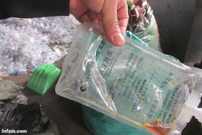 廢棄的輸液袋里依然有液體殘存。(江文/圖)(本文首發(fā)于2017年6月29日《南方周末》,原標(biāo)題為《湖南首例非法處置醫(yī)療廢物案背后醫(yī)療垃圾產(chǎn)業(yè)鏈》)在利益驅(qū)動(dòng)下,一條網(wǎng)點(diǎn)遍布全國(guó)的產(chǎn)業(yè)鏈形成。大量脫離監(jiān)