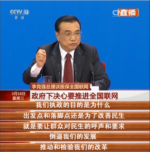 “政府下決心要推進基本醫(yī)保全國聯(lián)網(wǎng),要在今年基本解決省內(nèi)就醫(yī)異地直接結(jié)算的基礎上,爭取用兩年時間,使老年人跨省異地住院費用能夠直接結(jié)算,使合情合理的異地結(jié)算問題不再成為群眾的痛點。” 總理動情地說——