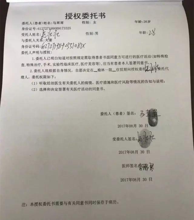 產(chǎn)婦簽署的《授權(quán)書(shū)》