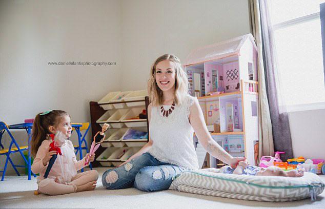 拍攝的照片,照片中的她或陪著女兒一起玩耍,或抱著小嬰兒哄他不要哭鬧。雖然飽受著病魔的折磨,但她仍然勇敢樂觀,笑對生活。她希望這些照片不僅能讓她自己更加自信,也能激勵其他跟她有一樣遭遇的母親們勇敢地走出憂郁,擁抱陽光。
