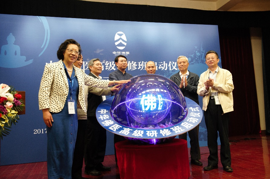 之后,李良松教授、釋忠明法師與各位嘉賓一起登臺,同按啟動球,宣布中華佛醫高級研修班正式啟動。在熱烈的掌聲中,整個啟動儀式圓滿落幕!