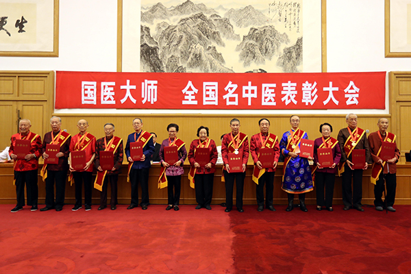 6月29日,人力資源社會保障部、國家衛生計生委和國家中醫藥管理局在北京聯合舉辦國醫大師、全國名中醫表彰大會,授予首都醫科大學附屬北京中醫醫院柴嵩巖、長春中醫藥大學附屬醫院王烈、北京中醫藥大學東直門醫院呂仁和等30位同志“國醫大師”榮譽稱號,享受省部級先進工作者和勞動模范待遇;授予中國中醫科學院院長、天津中醫藥大學校長張伯禮院士,北京中醫醫院陳彤云,山東中醫藥大學附屬醫院丁書文,湖北省中醫院陳如泉等99位同志“全國名中醫”榮譽稱號,追授高上林同志“全國名中醫”榮譽稱號。國家衛生計生委主任李斌,人力資源社會保障部副部長傅興國,國家衛生計生委副主任、國家中醫藥管理局局長王國強,國家中醫藥管理局副局長于文明、馬建中、王志勇,中組部人才工作局副局長唐永剛出席,并為國醫大師、全國名中醫榮譽稱號獲得者頒獎。