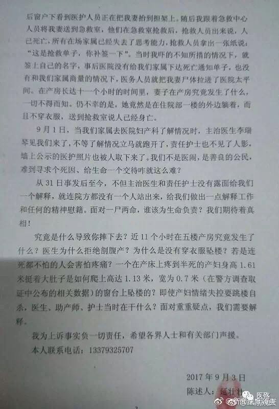新聞背景:孕婦喊疼想剖腹產被家屬多次拒絕跳樓自殺身亡