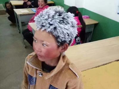“當(dāng)天早上氣溫是零下九度,是期末考試的第一天,氣溫是在半個小時內(nèi)降下來的。他家離得遠(yuǎn),因此到教室后,頭發(fā)都沾滿了風(fēng)霜。小孩子比較可愛,到班級后做了個怪怪的鬼臉,引起了班級同學(xué)的大笑。”付校長說。