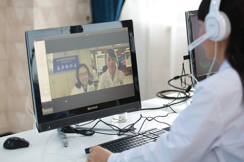 圖為四川微醫互聯網醫院醫生正在與基層接診點的醫生交流患者病情