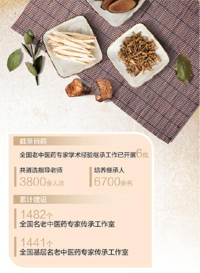 名老中醫學術思想和臨床經驗的傳承是中醫傳承的重要內容。我國深入開展中醫藥師承教育,目前已累計建設1482個全國名老中醫藥專家傳承工作室。