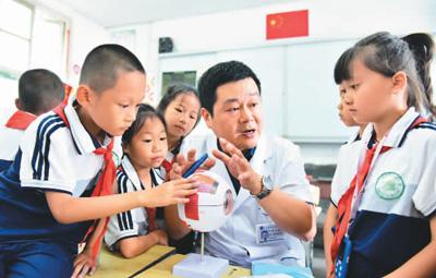 近日,在貴州省黔東南苗族侗族自治州從江縣城關第三小學,眼科醫生給學生講解健康用眼知識。