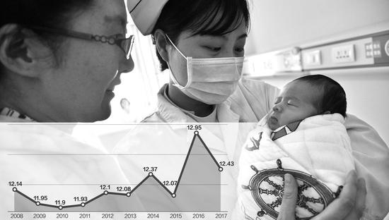 2018年1月18日,國家統計局發布的2017國民經濟運行情況顯示,2017年我國全年出生人口1723萬人,人口出生率為12.43‰。記者發現,從整體趨勢上看,相比2016年全年出生人口1786萬人,人口出生率為12.95‰,2017年出生人口和人口出生率都有小幅下降。