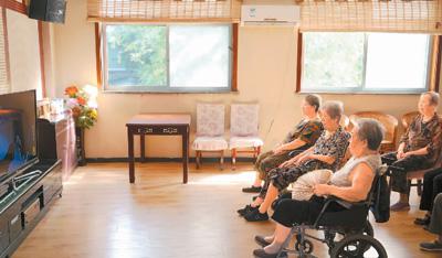 幾位老人在河北省石家莊市正定縣塔元莊村勁松老年公寓的活動室看電視。