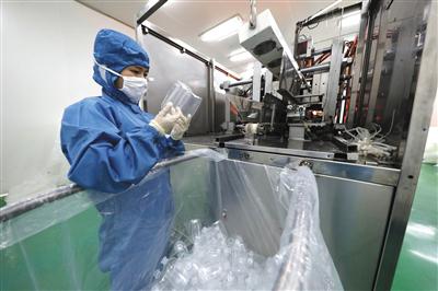 9月13日,江西撫州,江西回音必(東亞)藥業有限公司內,塑瓶輸液生產線上工人正在生產。圖/視覺中國