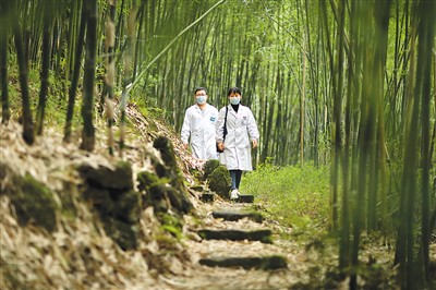 近年來,貴州省赤水市為切實解決偏遠鄉村群眾看病難、看病貴等問題,組建“黨員簽約家庭醫生服務隊”,定期上門為群眾進行免費健康檢查、送醫送藥。圖為10月26日,在赤水市石堡鄉大灘村,黨員簽約家庭醫生走在送醫上門的路上。
