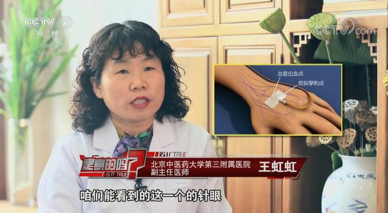 王虹虹說:“穿刺過程當中主要是有兩個所謂的‘針眼’,一個是皮膚的,我們能看到的針眼,再一個,就是血管穿刺進針的針眼。我們往往是把皮膚上的針眼按壓了,但是血管上的針眼沒有按壓,或者按壓的時間不夠,因此造成淤青?!?/p>