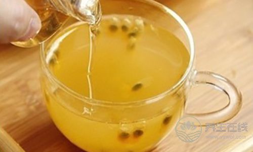 取一個百香果,切開挖取中間果汁(含種子),放入杯中,加200毫升水,加適量白糖漿調整甜度,攪拌即可得一杯色、香、味、營養俱佳的果汁。