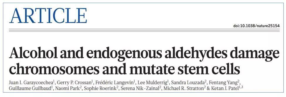 近日,這一觀點得到進一步確認。2018年發表于頂尖雜志《自然》上的一篇最新論文表示,劍橋大學科學家通過動物模型發現酒精和其代謝產物乙醛會對造血干細胞造成顯著影響,破壞其功能進而致癌。
