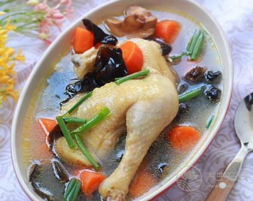 原料:本雞1只、胡蘿卜1-2根、干黑木耳幾朵