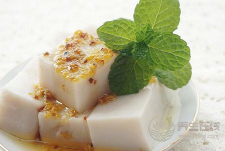 杏仁豆腐是以杏仁制作的傳統藥膳料理,杏仁自古就作為中藥藥方的一種,具有補身潤肺、保養喉嚨,防止肌膚干燥等作用,還可舒緩干咳。而杏仁中含有的脂質具有潤腸效果,可以解便秘。