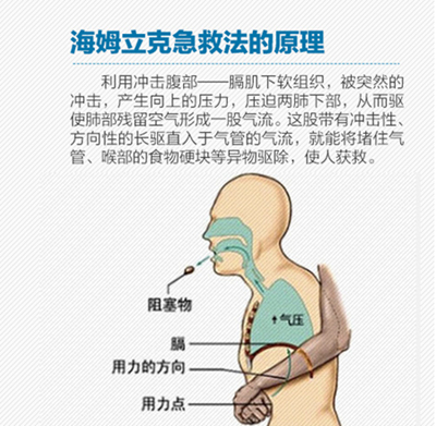 正確做法:不吃不喝,減少吞咽動作;采用海姆立克急救法處理。