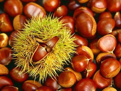 板栗味甘,性溫;歸腎、脾、胃經(jīng)。每100克板栗中含有約25毫克維生素C,比番茄的維生素C含量還要多。另外,其維生素B1、B2、胡蘿卜素的含量較一般干果都高。板栗所含的礦物質(zhì)也很全面,鈣、磷、鐵、鉀、鎂、鋅等,比蘋果、梨等普通水果高得多。