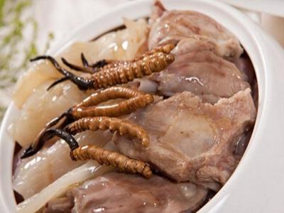 原料:羊肉一斤,蟲草五錢,淮山一兩半,杞子七錢,蜜棗八枚,生姜六片。