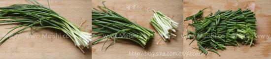 1.細香蔥去根洗凈,切去蔥白部分,留蔥葉,將蔥葉切成小段