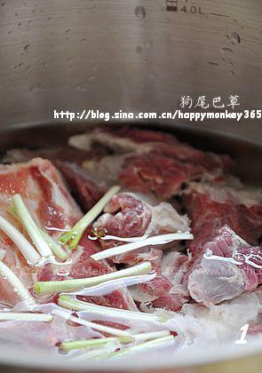 4.加入牛骨頭和適量清水,水量要沒過牛肉。燒開后轉小火,慢燉七八十分鐘(也可以使用高壓鍋,大大節約時間,二三十分鐘即可,我是害怕那玩意噗噗噴氣的樣子,沒敢用)