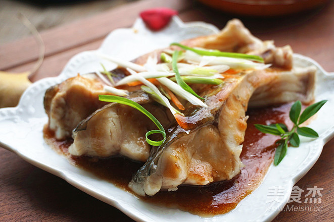 取炒鍋,鍋內加入適量清水,將水燒沸后加入料酒、蔥、姜和魚塊,煮約7-8分鐘至魚塊熟透即可撈放碗里
