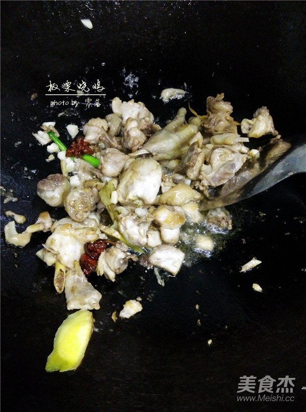 7.放入雞肉翻炒變色;