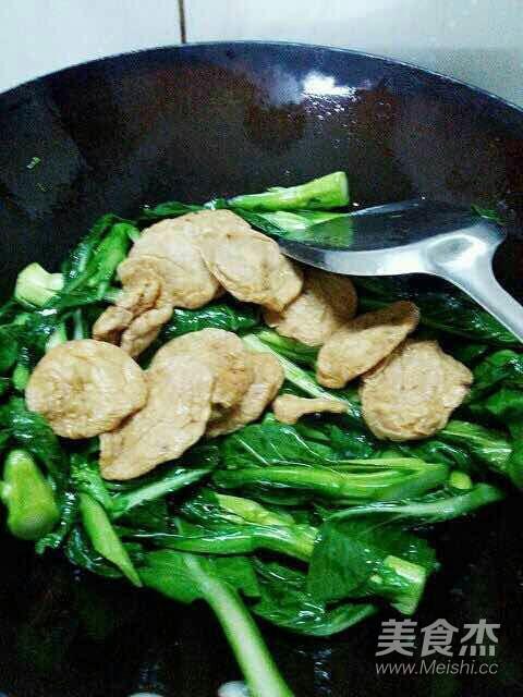 將菜心下鍋翻炒片刻,加入適量食用鹽。