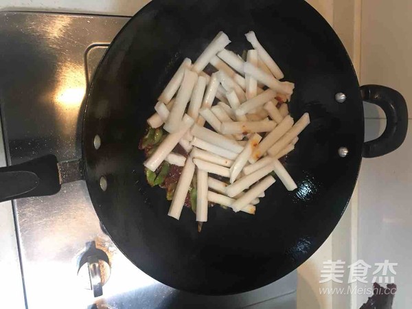 3.年糕掰開成小條,不用過水焯,其實做年糕的時候糯米都是蒸熟的,原則上說年糕本來就是熟的。