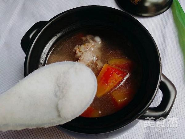 3、排骨熬煮出味道,軟爛后下入木瓜