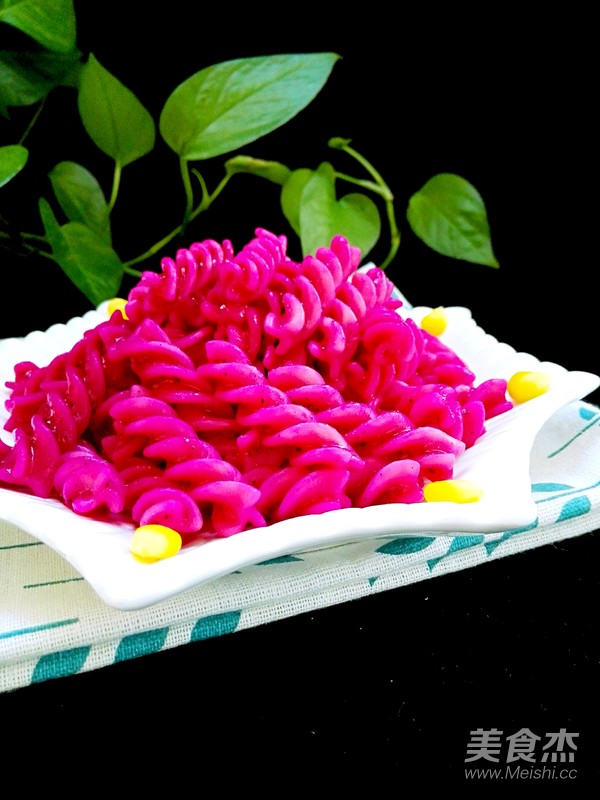 火龍果味螺旋意面#明目護(hù)眼從吃開(kāi)始#的做法-果味拌菜譜
