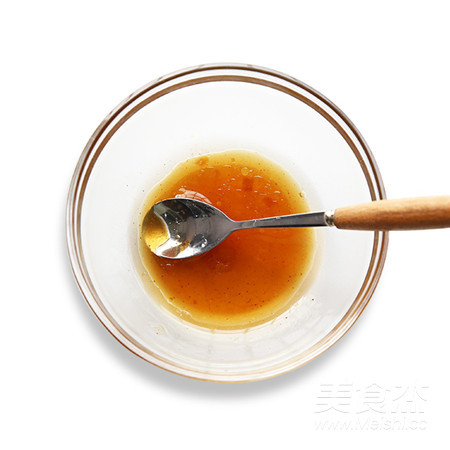 將鹽、料酒、魚露和沙拉汁放碗里調(diào)勻。