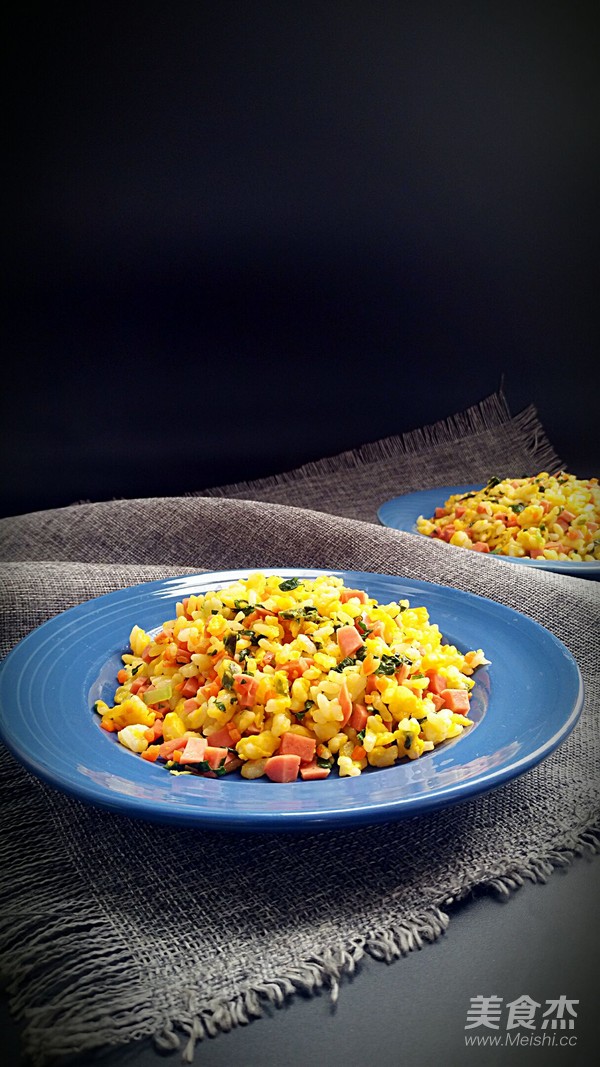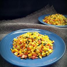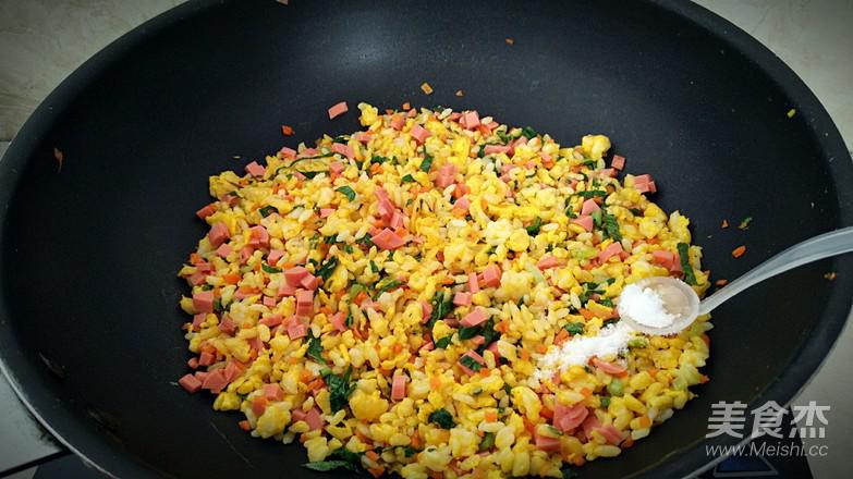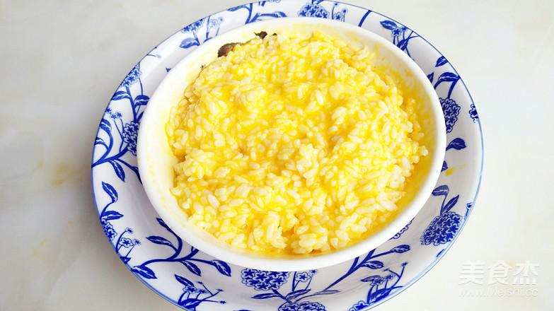 用雞蛋把米飯寖泡一會,米粒柔軟不硬。\n用土雞蛋炒米飯顏色格外的金黃。