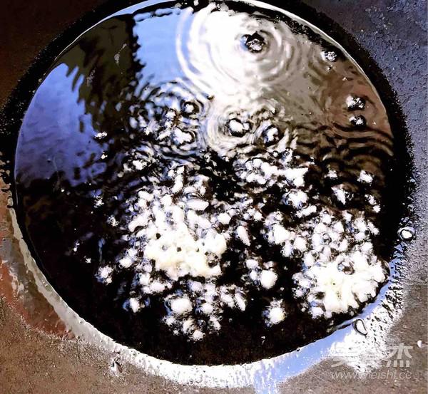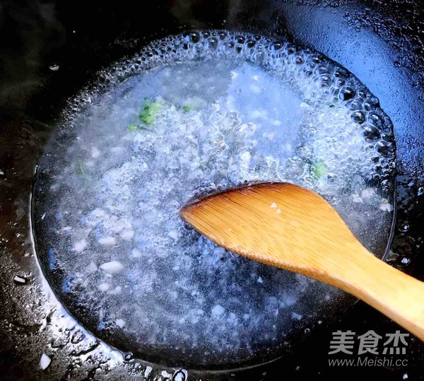 7.鍋中倒入適量清水燒開再放人蒜粒和少許鹽和味精調味水淀粉勾芡調勻
