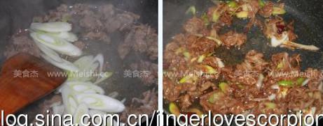 4.繼續翻炒到沒有水汽后,放入大蔥,再炒幾十秒,大蔥變軟以后就可以出鍋了
