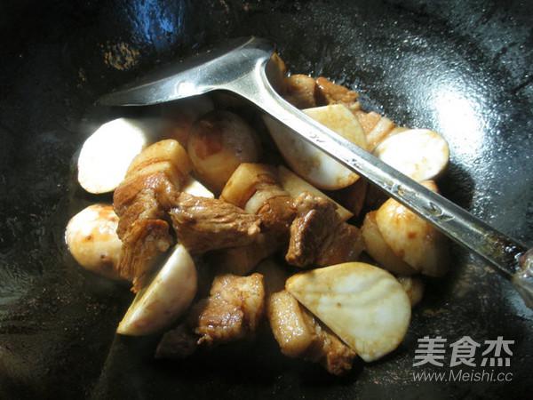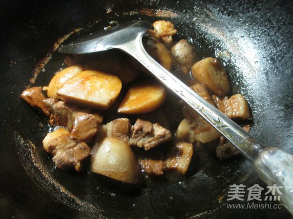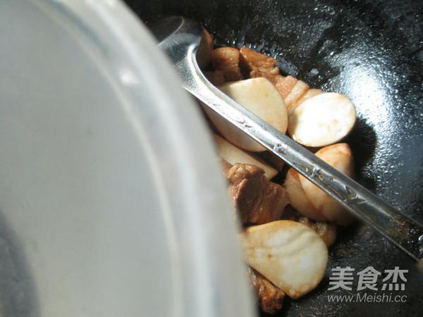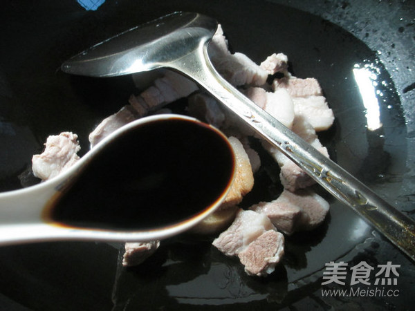 燒鍋加3湯勺油燒熱,下入焯好的五花肉,加3湯勺醬油。
