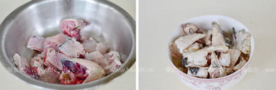 6.將腌制好的魚在鍋中稍煎,待魚微微變色,盛出