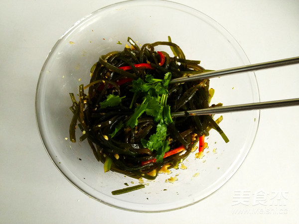 2.海帶絲蒸熟后,用清水清洗幾遍后控干水分;