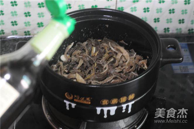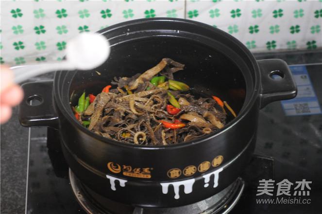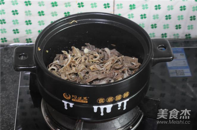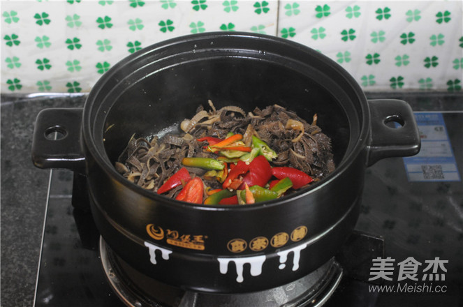 4.鍋燒熱,將毛肚倒進鍋里,慢慢翻炒