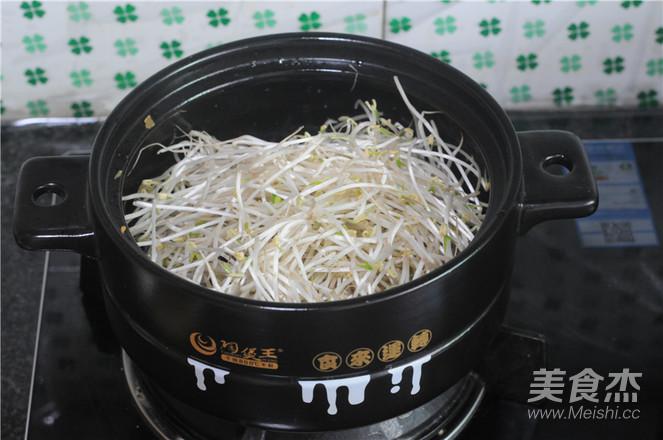 10.關火,砂鍋不用洗,直接將豆芽菜鋪在里面