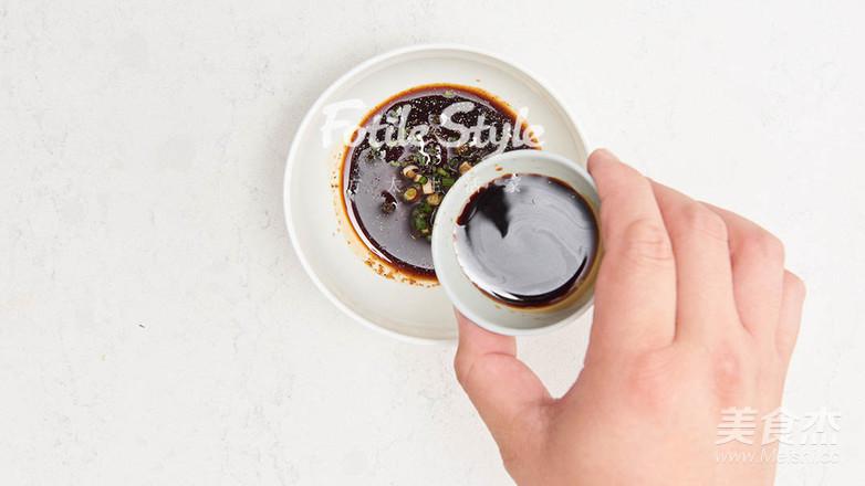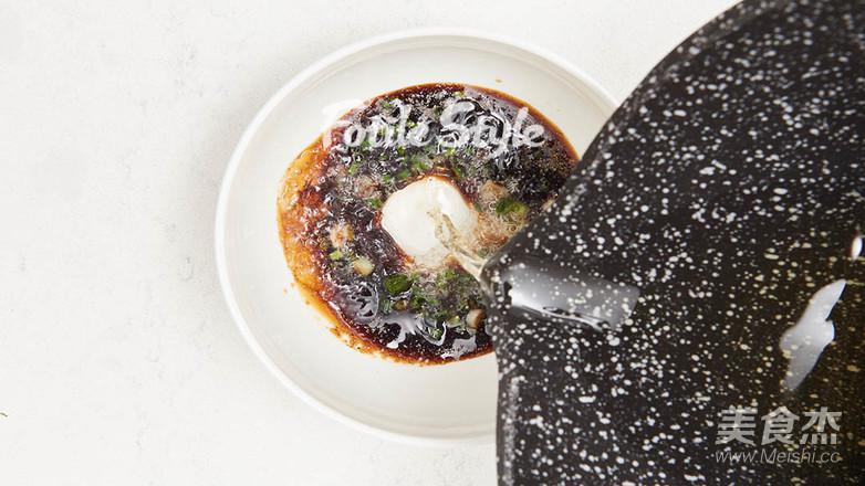 調料汁:把蔥花、生抽、蒜末、鹽、糖、放入碗中,然后在碗中澆入熱油拌勻