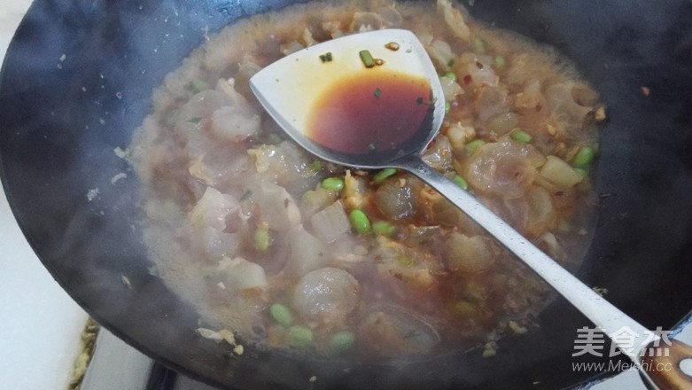 熱油鍋,放入蔥姜蒜小火炒出香味,再加入老干媽醬炒勻