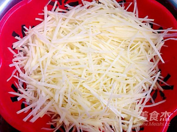 土豆絲用清水清洗幾遍撈出控水