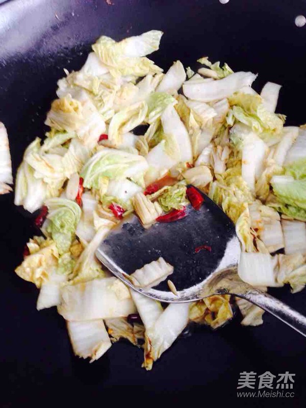 鍋里倒入適量的油燒熱后,倒入大蒜和紅辣椒爆香
